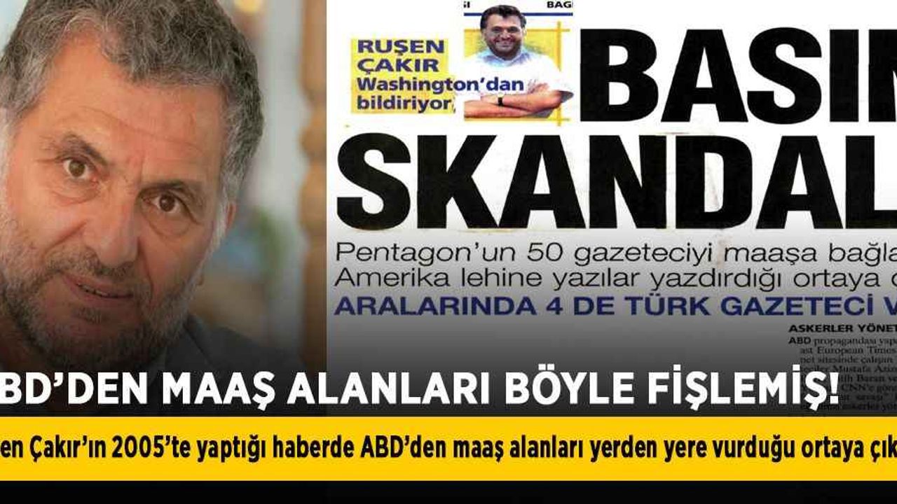 Ruşen Çakır'ın 7 Şubat 2005 yılında ABD'nin 50 gazeteciye maaş bağladığını gösteren bir haber yazdığı ortaya çıktı. Yazdığı haberi gazetelere "Basın skandalı", "Pentagon'un Türk Gazetecileri" başlığıyla servis eden Çakır'ın haberindeki "Bazı meslektaşlarımın enerjilerini hem de çok ucuza ABD için seferber etmiş olmaları ağrıma gidiyor." ifadeleri dikkat çekerken bugün ABD'den 476 bin 720 dolar alması eleştirilere neden oldu.