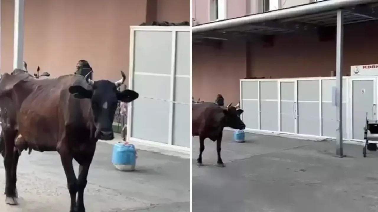 Hastane personeli ve vatandaşların bakışları arasında gezinen inek, bir süre sonra gözden kayboldu. İlginç anlar ise vatandaşlar tarafından cep telefonu kamerasıyla kayda alındı.