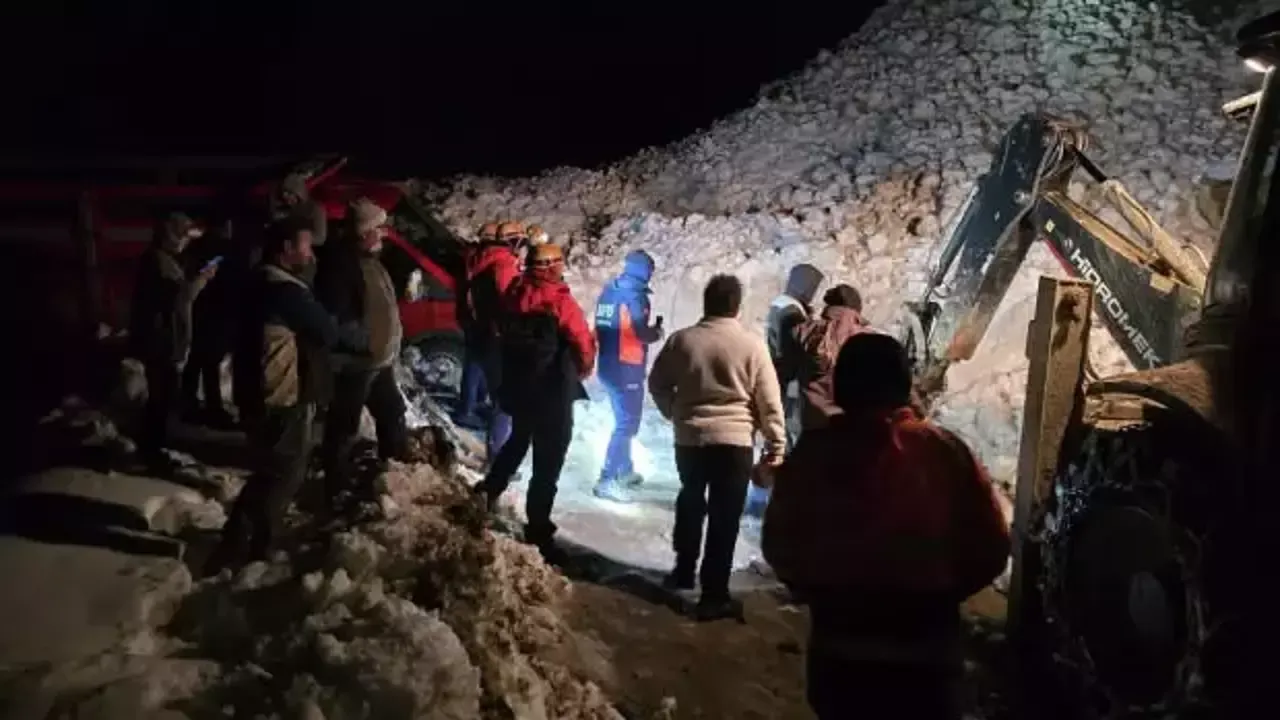 Yolda seyir halinde bulunan ve içinde hayvanların da yer aldığı bir kamyonete çığ çarpması sonucu uçurumun kıyısında askıda kaldı.