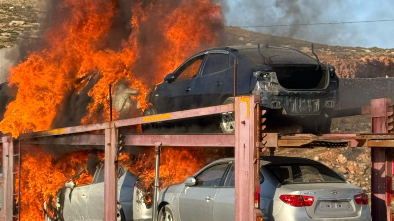 Hatay’ın Reyhanlı ilçesinde bulunan Cilvegözü Sınır Kapısı'nda, Suriyelilerin ülkelerine götürmek üzere yurt dışından temin ettikleri araçları taşıyan bir tırda yangın çıktı. Henüz belirlenemeyen bir nedenle başlayan yangında, tırın dorsesinde yüklü 6 araç yanarak tamamen kullanılamaz hale geldi.