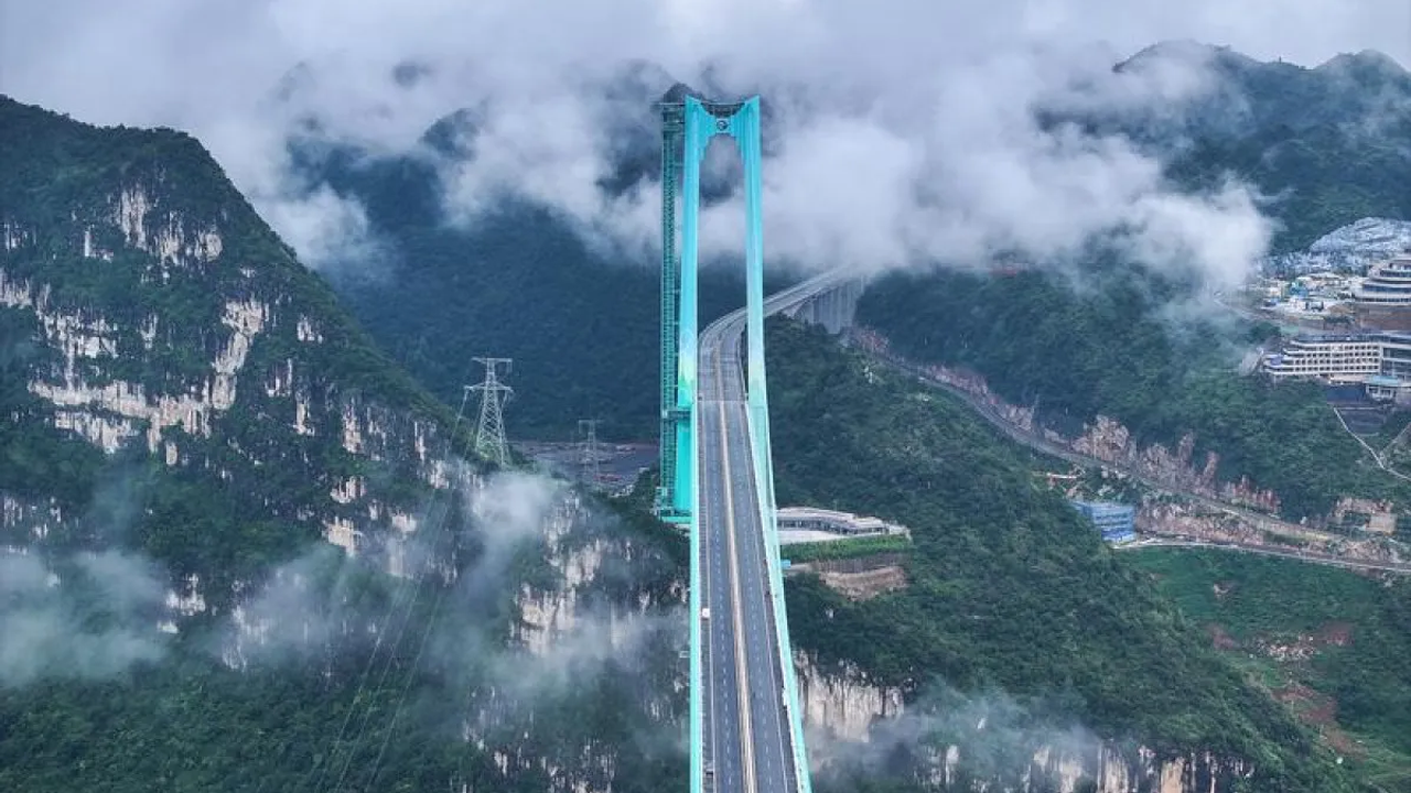 Guizhou'nun dağlık kesimindeki Beipan Nehri'nin 625 metre üzerinde yükselen Huajiang Büyük Kanyon Köprüsü’nün, San Francisco'daki Golden Gate Köprüsü'nden yaklaşık dokuz kat daha yüksek olduğu kaydedildi.