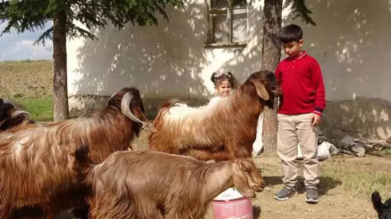 Derslerinin yanı sıra ailesine günlük işlerinde yardımcı olan Emir Ali, keçi, kaz, tavuk beslenirken yardımcı oluyor, gerekirse bahçe çapalıyor.