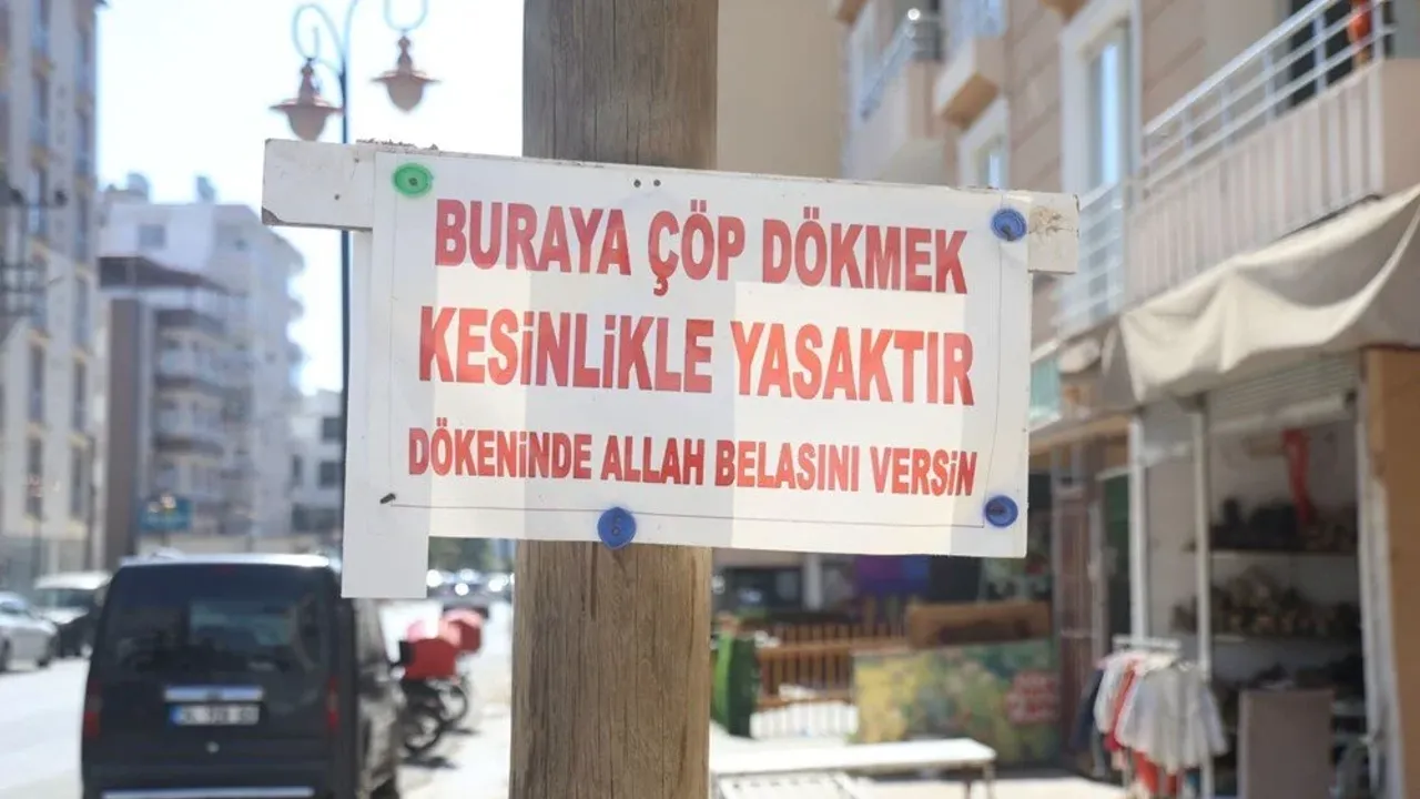 "‘BURAYA ÇÖP DÖKMEK KESİNLİKLE YASAKTIR, DÖKENİN ALLAH BELASINI VERSİN' YAZILI TABELAYI ASTIKTAN SONRA ÇÖP DÖKEN OLMADI"