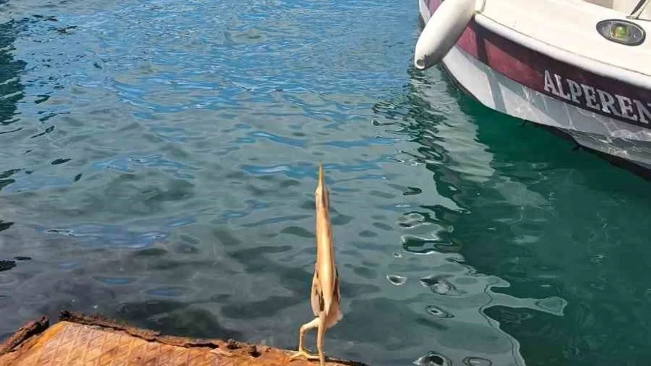 Göçmen bir kuş olan balıkçıl Cüce balaban kuşu Faroz Balıkçı Limanı'ndaki bir kayığının üzerine geldi.