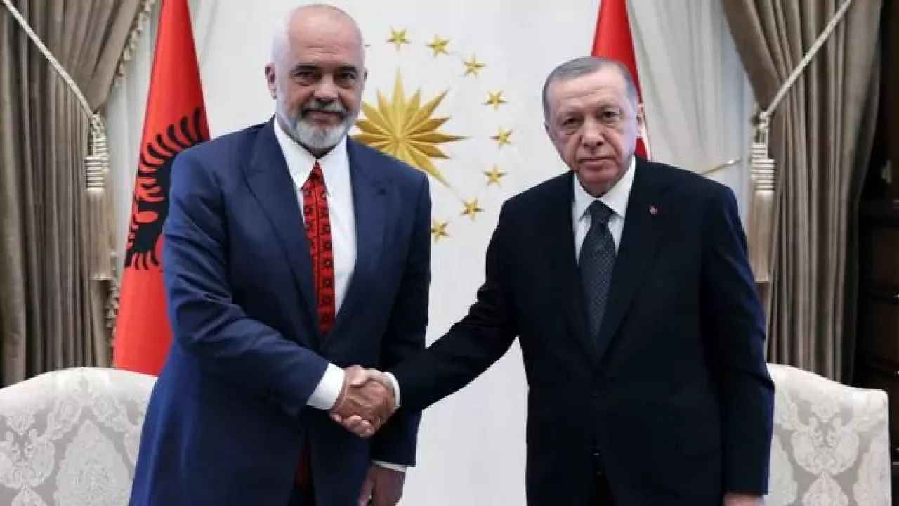 Cumhurbaşkanı Recep Tayyip Erdoğan, Beştepe'deki Cumhurbaşkanlığı Külliyesi'nde kabul ettiği Arnavutluk Başbakanı Edi Rama ile görüştü. Görüşmeye ilişkin Cumhurbaşkanlığı'ndan fotoğraf paylaşıldı.