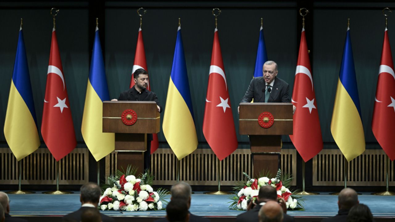 Cumhurbaşkanı Erdoğan, Cumhurbaşkanlığı Külliyesi'nde, Ukrayna Devlet Başkanı Volodimir Zelenskiy ile düzenlediği ortak basın toplantısında, Zelenskiy'i Türkiye'de ağırlamaktan büyük bir memnuniyet duyduklarını belirtti.