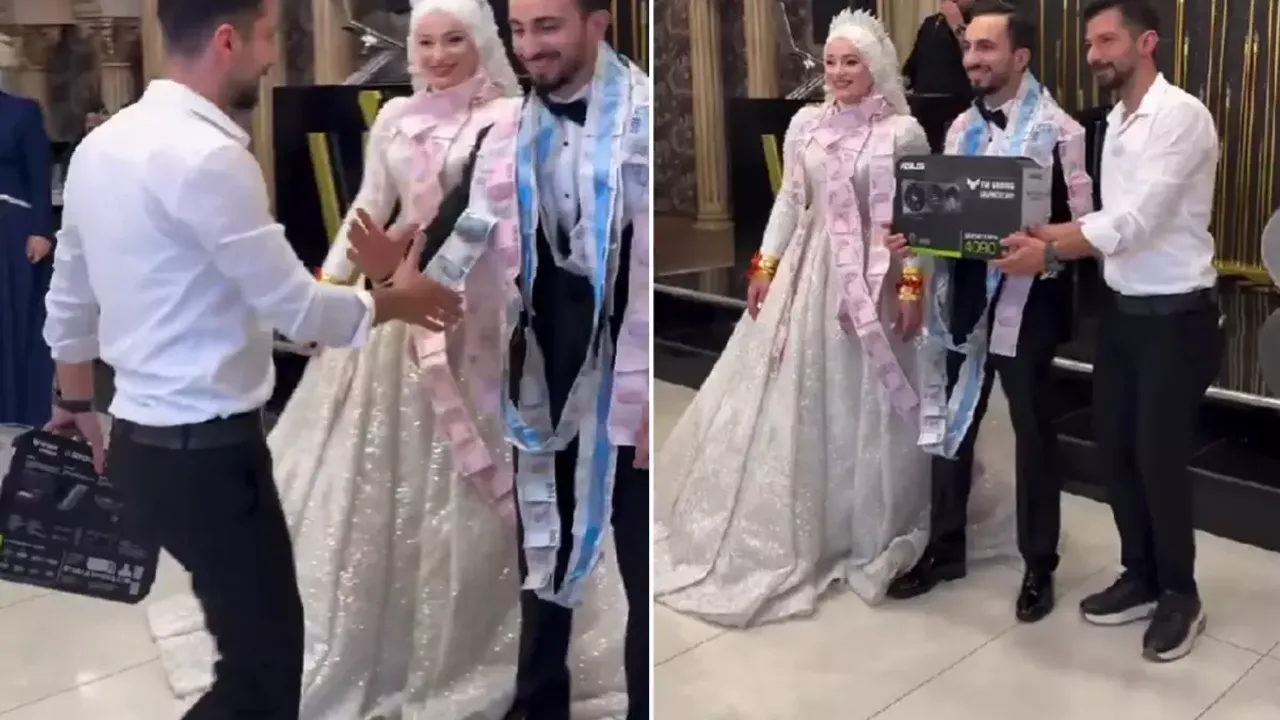 Türkiye'nin bir kentinde yapılan düğün, klasik geleneklerin dışına çıkan eğlenceli bir anıyla hafızalara kazındı. Takı töreni sırasında misafirler altın, bilezik ve para takmak için sıraya girerken, içlerinden biri damada beklenmedik bir hediye sundu: RTX 4090 ekran kartı.