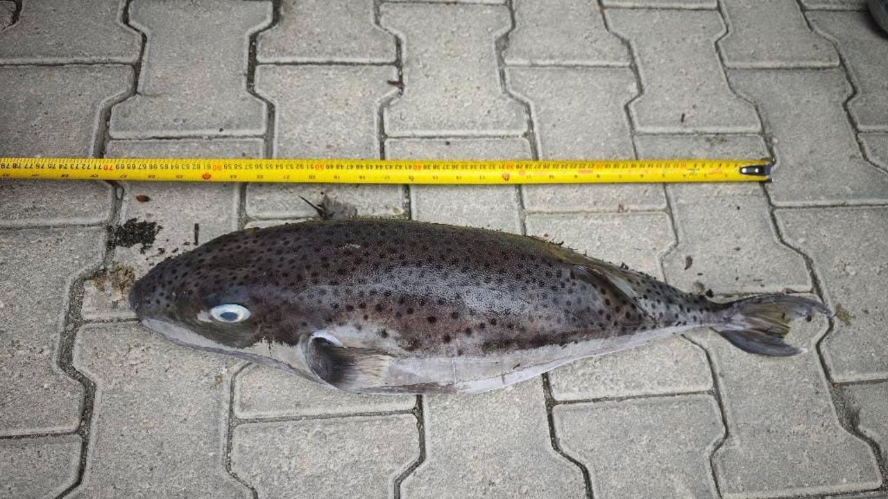 Muğla’nın Datça ilçesi Mesudiye Mahallesi’ndeki Hayıtbükü Sahili’nde temizlik çalışması yapan belediye ekipleri, şiddetli rüzgar nedeniyle kıyıya savrulmuş bir balıkla karşılaştı. Yapılan incelemede, karaya vuran balığın zehirli türlerden biri olan balon balığı olduğu belirlendi. Ekiplerin gerçekleştirdiği ölçümlere göre 68 santimetre uzunluğunda olduğu tespit edilen balon balığının, boyutuyla şimdiye kadar Datça kıyılarında tespit edilen en büyük balon balığı olduğu bildirildi. Tehlikeli türler arasında yer alan ve insanlar için ciddi risk oluşturabilen balon balığı, belediye ekipleri tarafından kontrollü şekilde imha edildi.