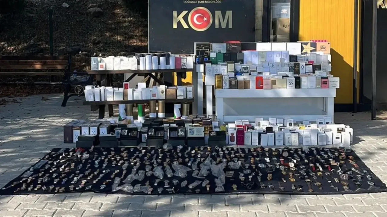 Düzenlenen operasyonla şüpheli yakalanırken, adresinde ve aracında yapılan aramalarda 1070 adet farklı markalarda parfüm ile 379 adet çeşitli markalara ait kol saati ele geçirildi.