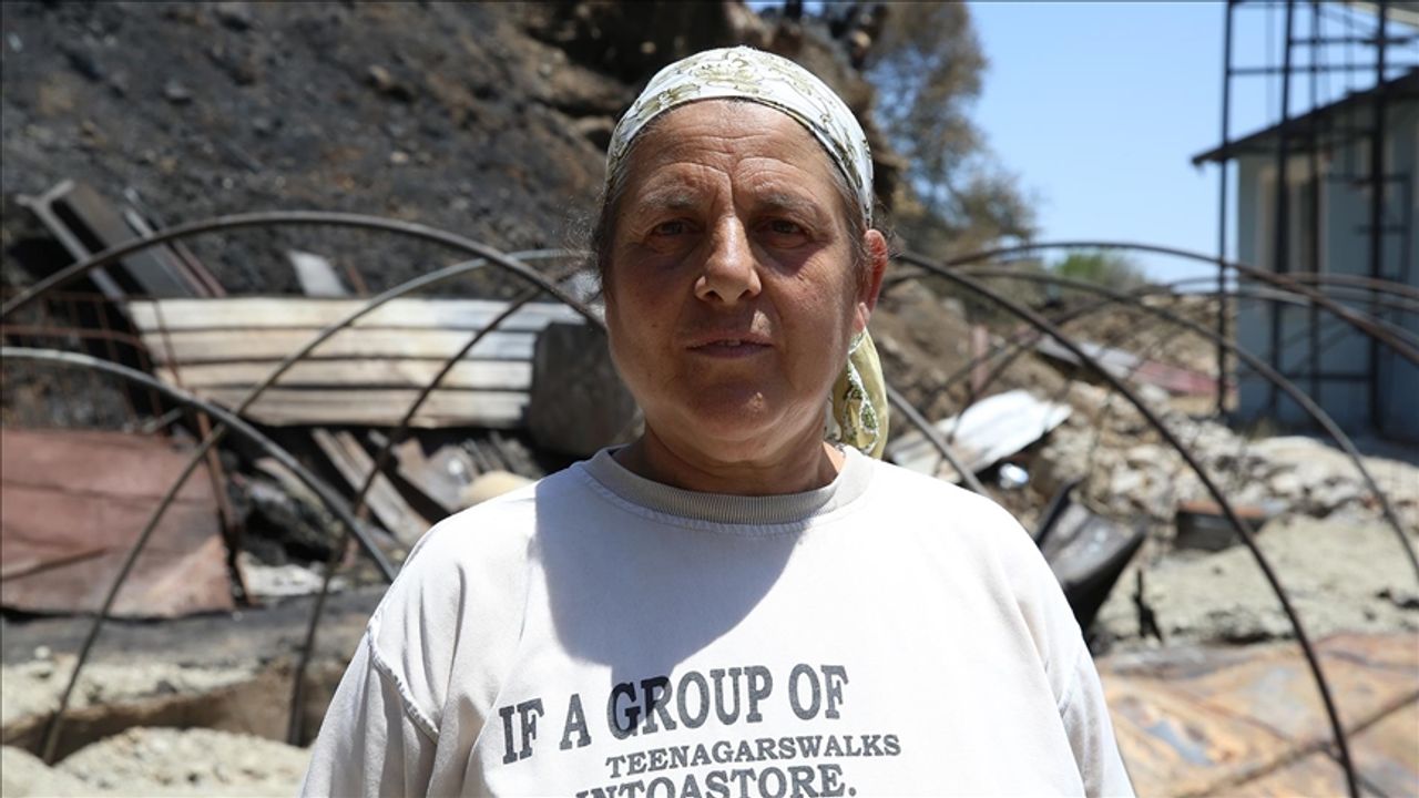 "Yerleşeceğiz diye mutfağı temizliyordum. Tekrar kirlenmesin diye pencereleri kapatmıştım. Çok rüzgarlıydı, bir baktım etrafım duman, dışarı koştum. Elimde ne telefonum ne de bir şey var, hepsi içerdeydi. Baktım her tarafım ateşler içinde, ne yapabilirim ki... Burada iki üç fıçı su var, eve yaklaşan kıvılcımları sadece söndürebildim. Çığlık atsam, bütün köy, dört bir yanım yanıyor, kim kime, herkes kendi canında. Sağ olsun yardıma koşanlar oldu. Sonra herhalde dumandan zehirlendim, ondan sonra beni ambulansa bindirdiler. Daha evimi tamamlamamıştım, eksikleri vardı. Yangın olmasaydı bu hafta evime taşınacaktım. Artık böyle bir felaket yaşadık, ne yapalım Allah'ın takdiri, yapacak bir şey yok."