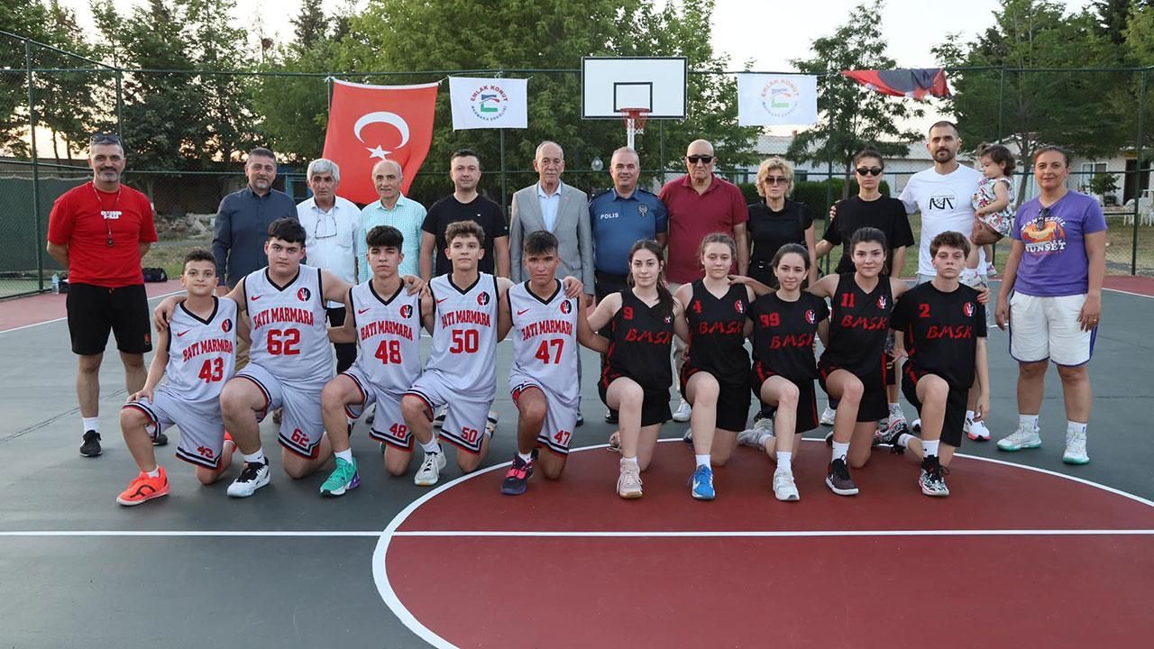 Konuşmanın ardından basketbol sahasının açılış kurdelesi kesildi, gençler basketbol oynadı.