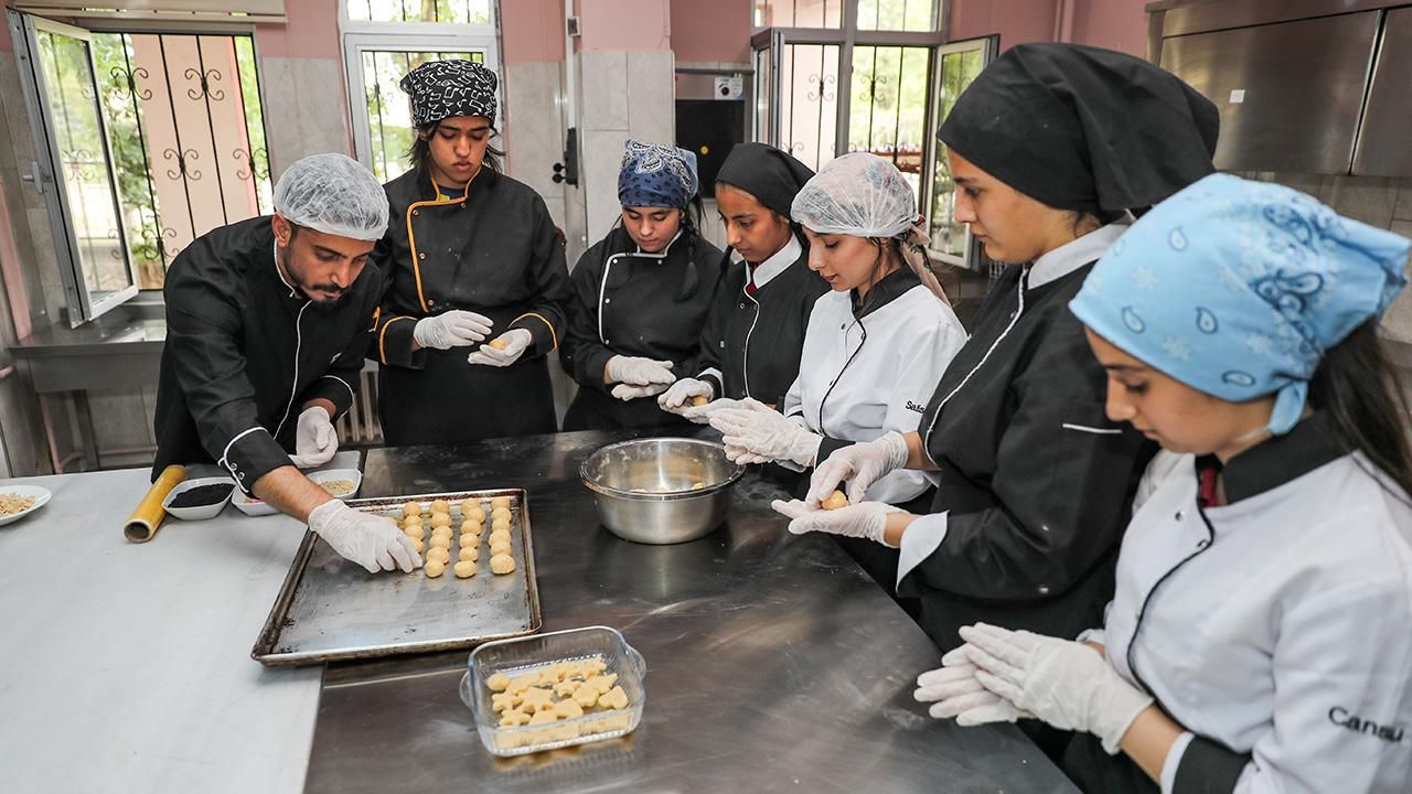 Yiyecek İçecek Hizmetleri 12. sınıf öğrencisi Zozan Bilen ise okulunda yaklaşık 7 bin kişilik yemek hazırlandığını aktardı.