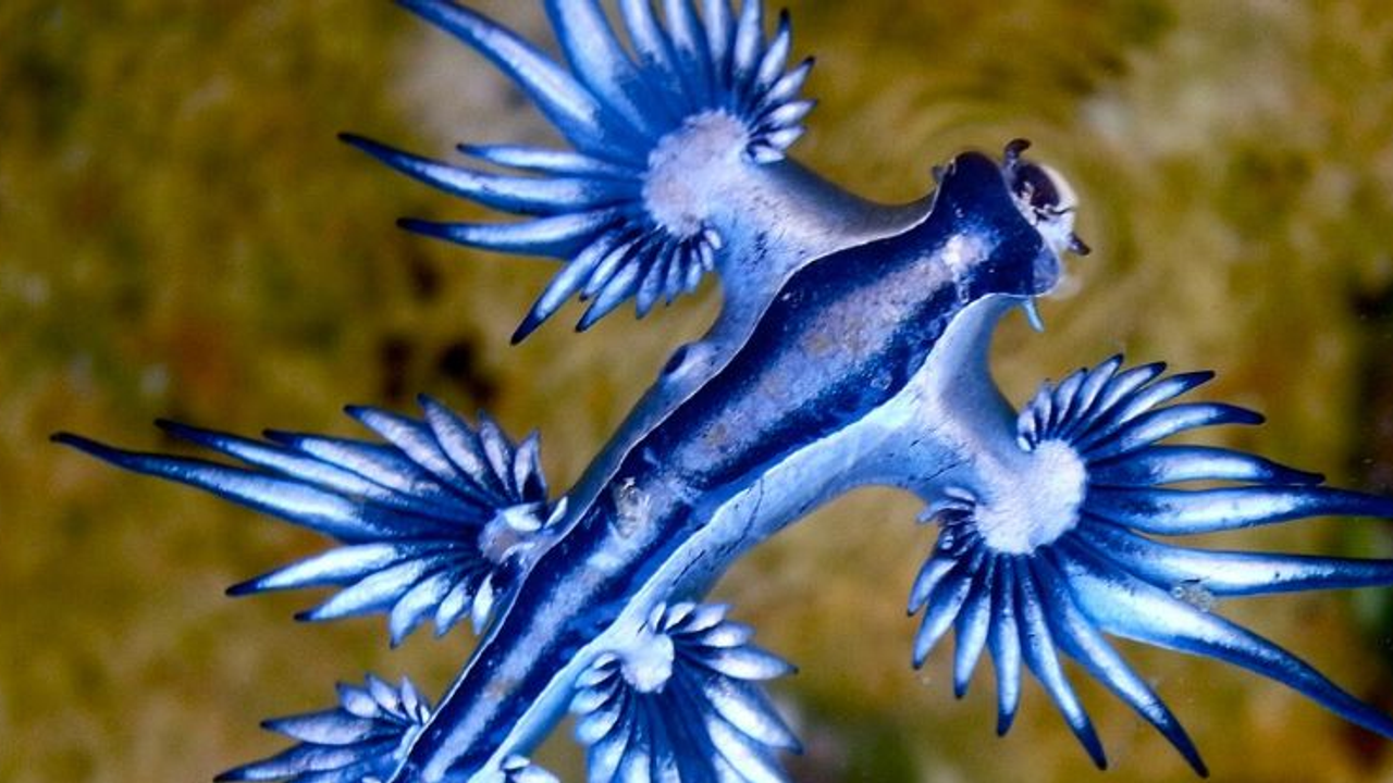 Deniz yüzeyinde süzülen bu mavi-beyaz renkli deniz sümüklüböcekleri, yukarıdan bakıldığında dalgalarla kamufle oluyor, aşağıdan ise parlak mavi çizgiler saçıyor. Görsel olarak büyüleyici görünseler de, çıplak elle temas etmek ciddi sağlık sorunlarına yol açabiliyor.