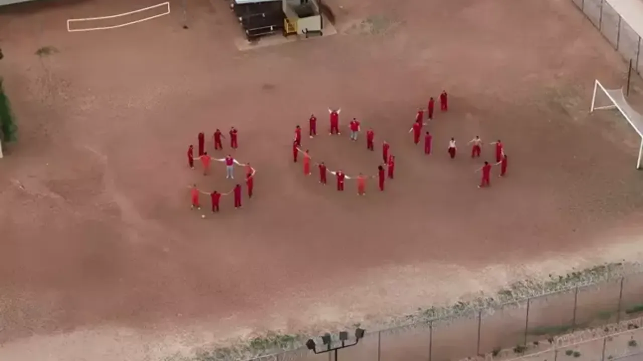 Teksas'ın Anson şehrindeki Bluebonnet göçmen merkezinde tutulan mahkumlar dünyaya yardım mesajı gönderdi. Merkezin yakınlarında uçan drone kamerasını fark eden 34 tutuklu, tesisin avlusunda S.O.S harfleri oluşturarak yardım istedi.