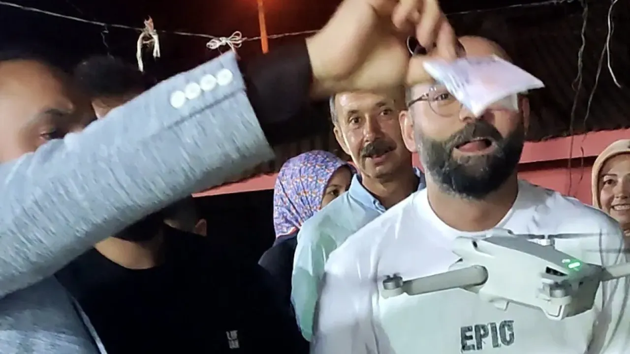 Düğüne drone operatörü arkadaşı ile birlikte giden Aydın, ağabeyinden 'drone'a para takmasını söyledi.