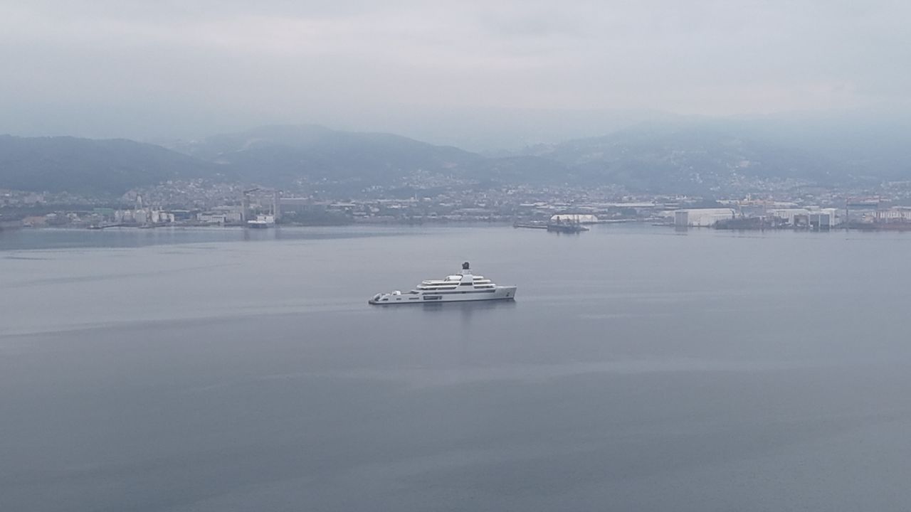 Sabah saatlerinden itibaren körfezde seyrettiği gözlemlenen dev yat, çevredeki vatandaşlar tarafından ilgiyle takip edildi.