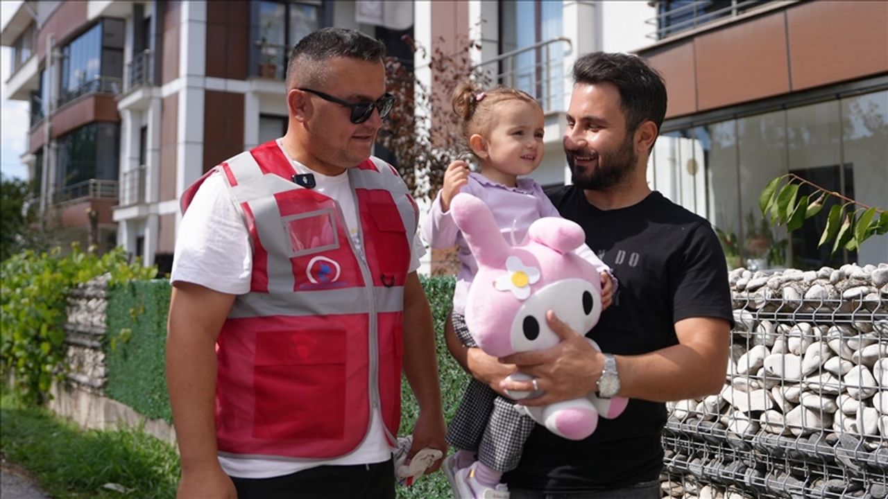 Küçük kız aldığı hediyeyle mutlu olurken, aile de belediye ekiplerine bu anlamlı jest için teşekkür etti.