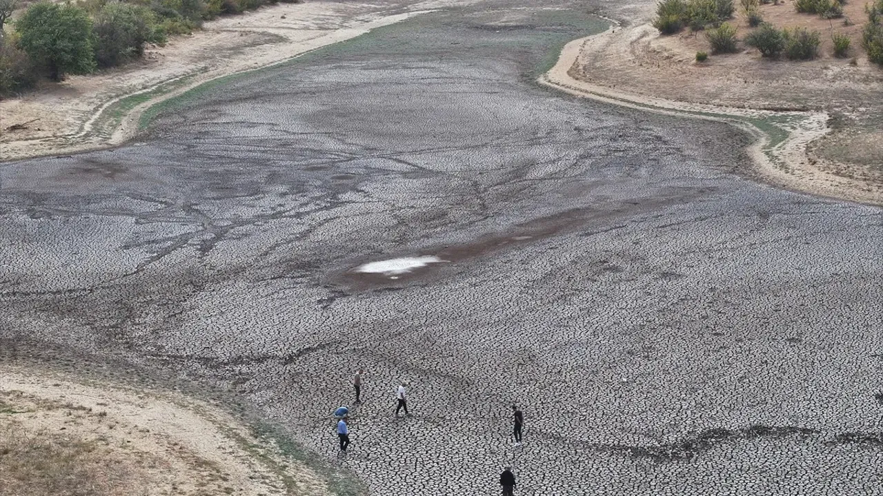 Kısa süreli sağanak geçişlerinin fayda sağlamaması ve göleti besleyen su kaynaklarının da kurumasıyla göletin suyu tamamen çekildi.