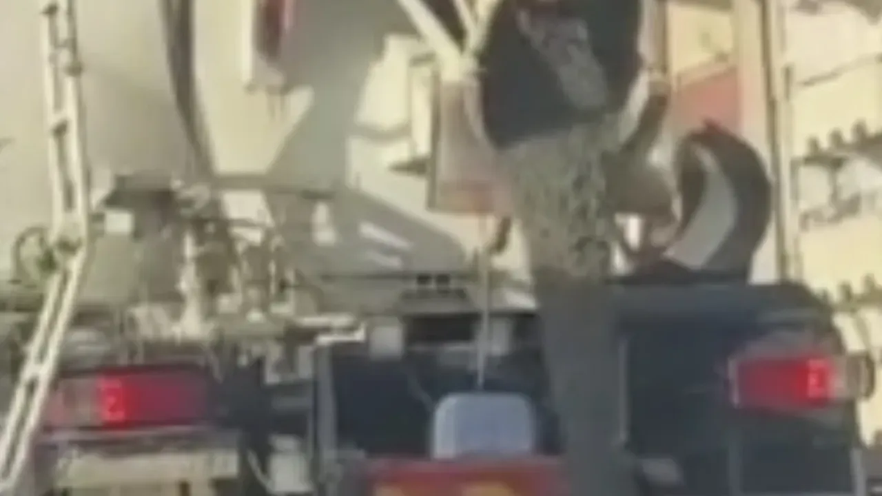 Harcı asfalta döken sürücü, daha sonra yolda hareket ederek gözden kayboldu.