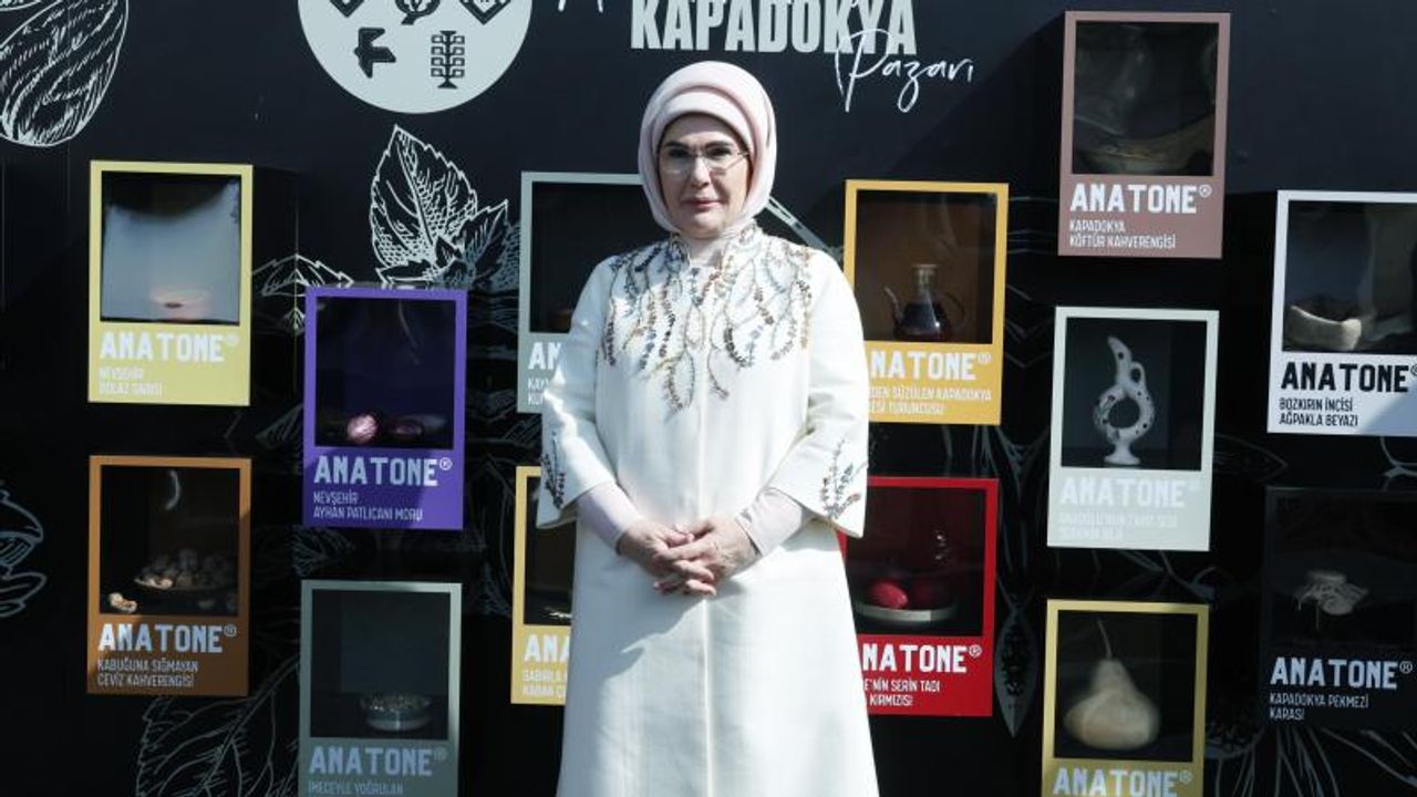 Emine Erdoğan, “Anadoludakiler” projesiyle zanaat geleneklerinin, yöresel ürünlerin ve üretim tekniklerinin koruma altına alındığını belirtti. Proje kapsamında kadın girişimcilere ve kooperatiflere destek sağlandığını ifade eden Erdoğan, “Kapadokya Pazarı ile bu emeği görünür kıldık” dedi.
