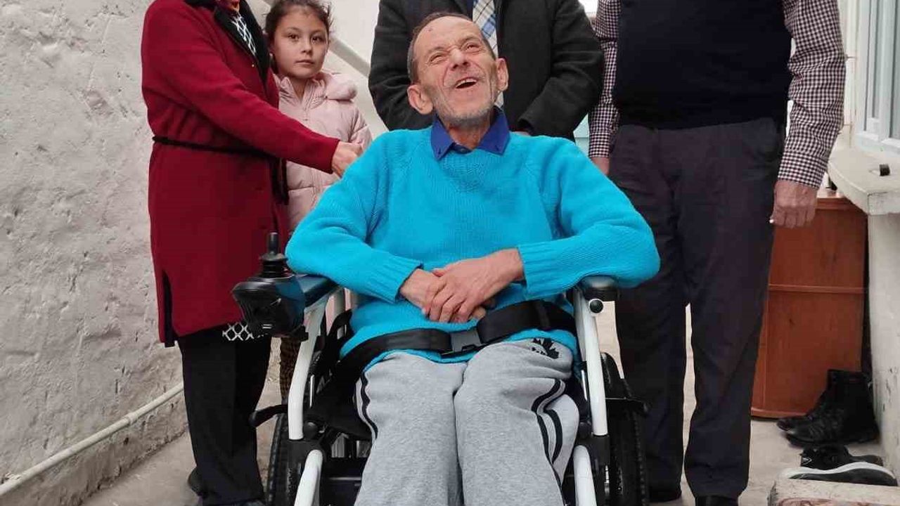 Çorum’un Sungurlu ilçesi İsmet Paşa Mahallesi’nde yaşayan yürüme ve konuşma engelli Murat Kan’ın tekerlekli sandalyesi olmadığını duyan hayırsever iş adamları harekete geçti. Hayırsever iş adamları tarafından satın alınan tekerlekli sandalye Kan’a hediye edildi. Tekerlekli sandalye ile evden çıkan Murat Kan, büyük sevinç yaşadı.