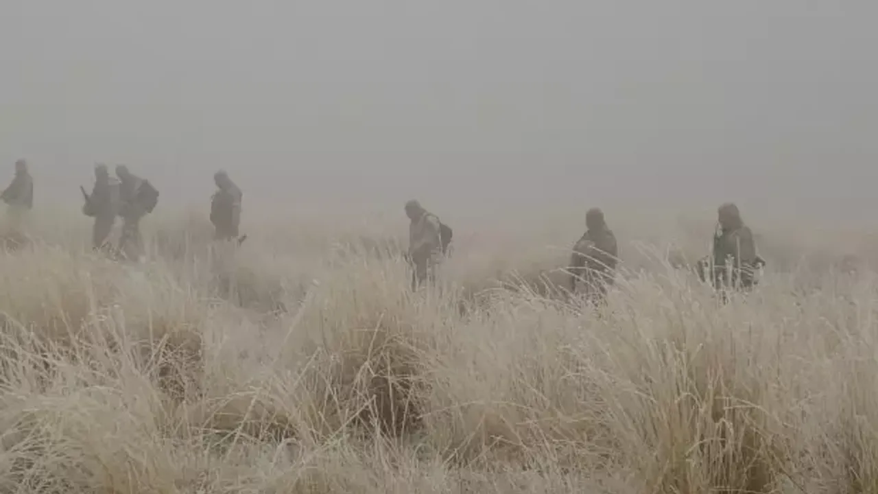 Jandarma iz takip köpeği Tapan'ın da kullanıldığı arama çalışmaları yoğun sis altında devam ediyor.