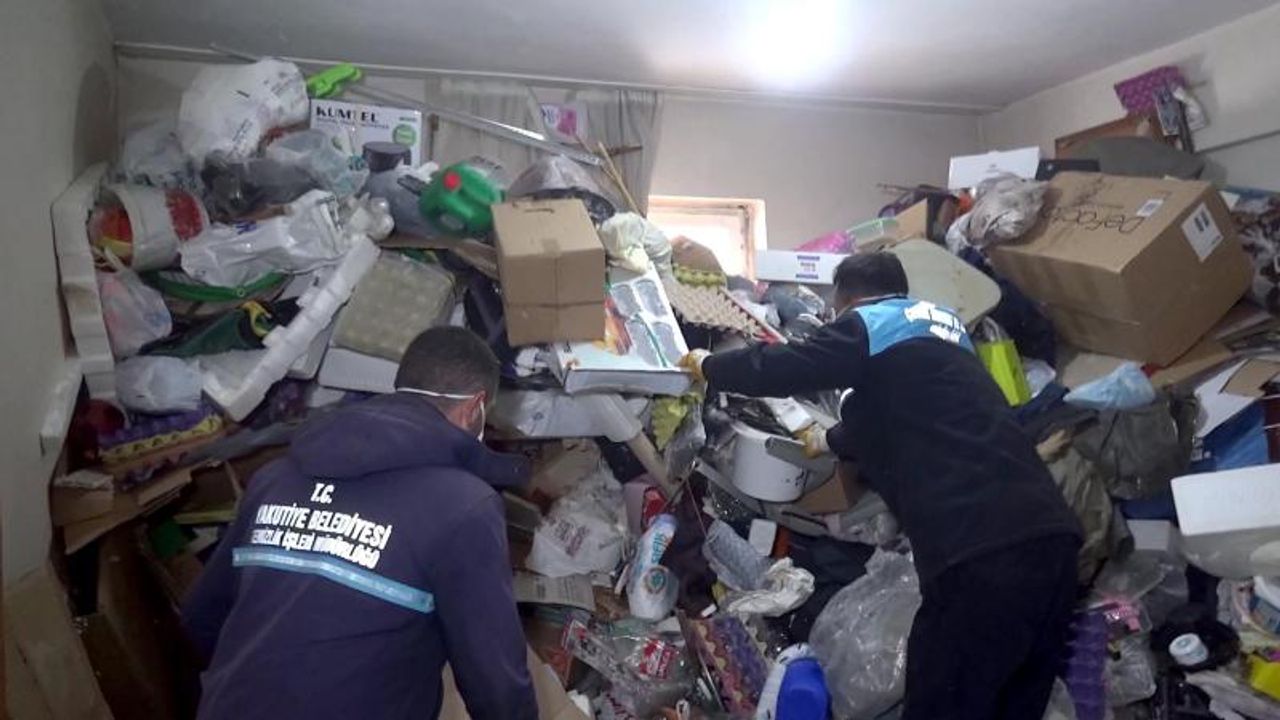 Erzurum'un Yakutiye ilçesinde, yalnız yaşayan 73 yaşındaki kişinin evinden belediye ekiplerince 25 ton çöp tahliye edildi.