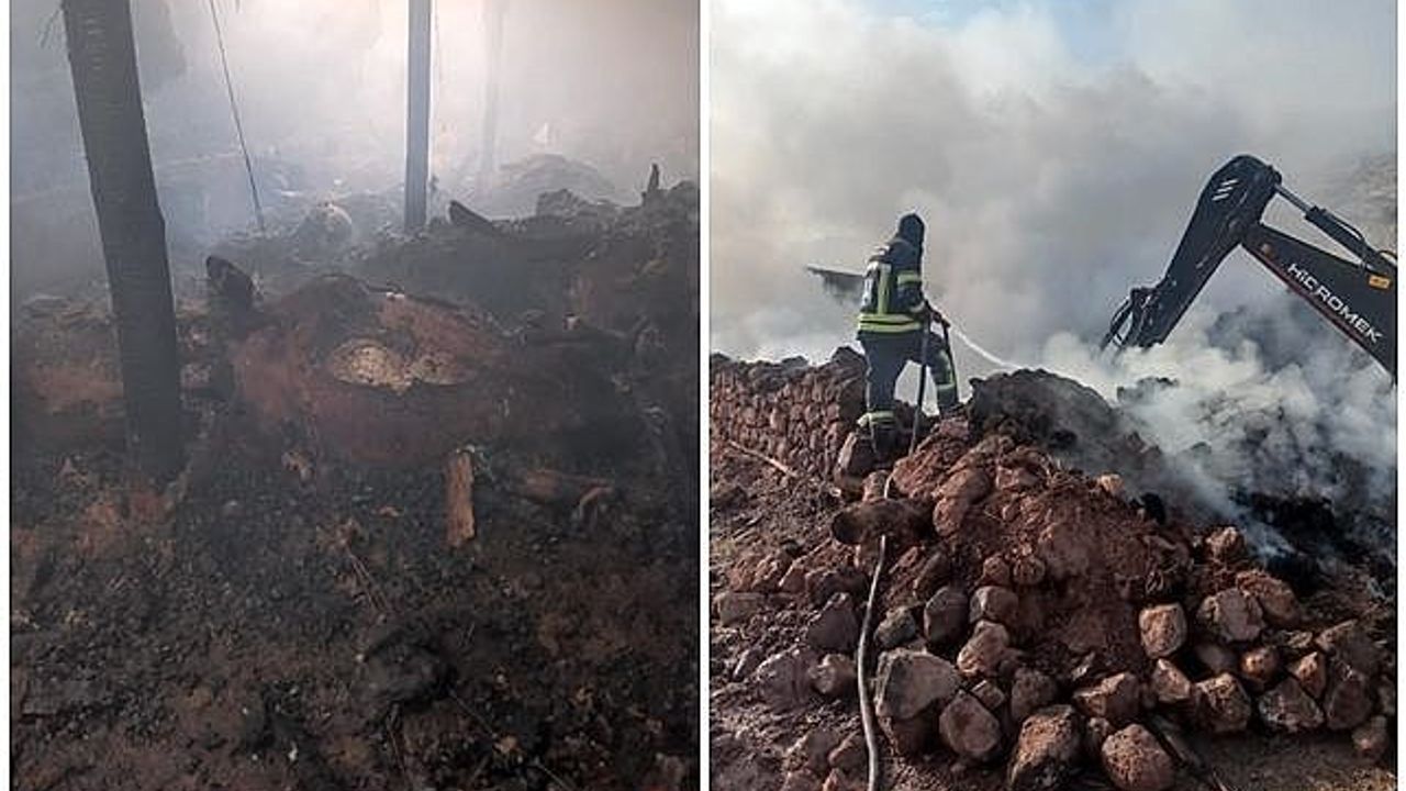 Ünlüce Mahallesi'nde İlhami Bingöl'e ait samanlık, ahır ve kilerde henüz bilinmeyen nedenle yangın çıktı.