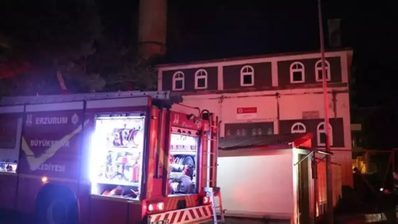 Yakutiye ilçesinde 18. yüzyıldan kalma Aşağı Mumcu Cami'nin çatısında henüz bilinmeyen nedenle yangın çıktı.