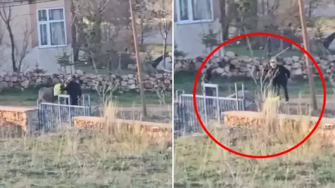 O anlar, çevredeki bir kişinin cep telefonuyla kaydedildi. İhbar sonrası jandarma ekipleri tarafından gözaltına alınan S.C. ifadesinin ardından serbest bırakıldı. S.C.'nin sinirlendiği için eşeği dövdüğünü söylediği öğrenildi.
