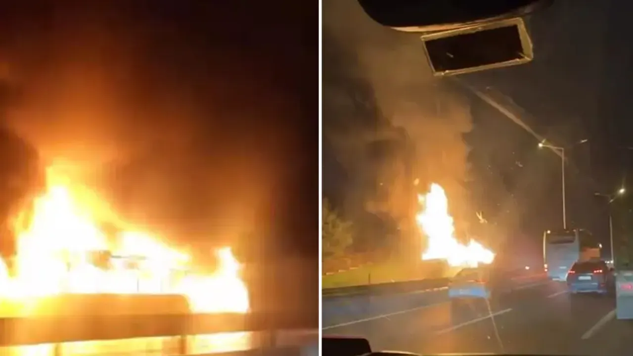 Alevlerin sardığı otobüsteki yangın, itfaiye ekiplerinin müdahalesiyle söndürüldü.