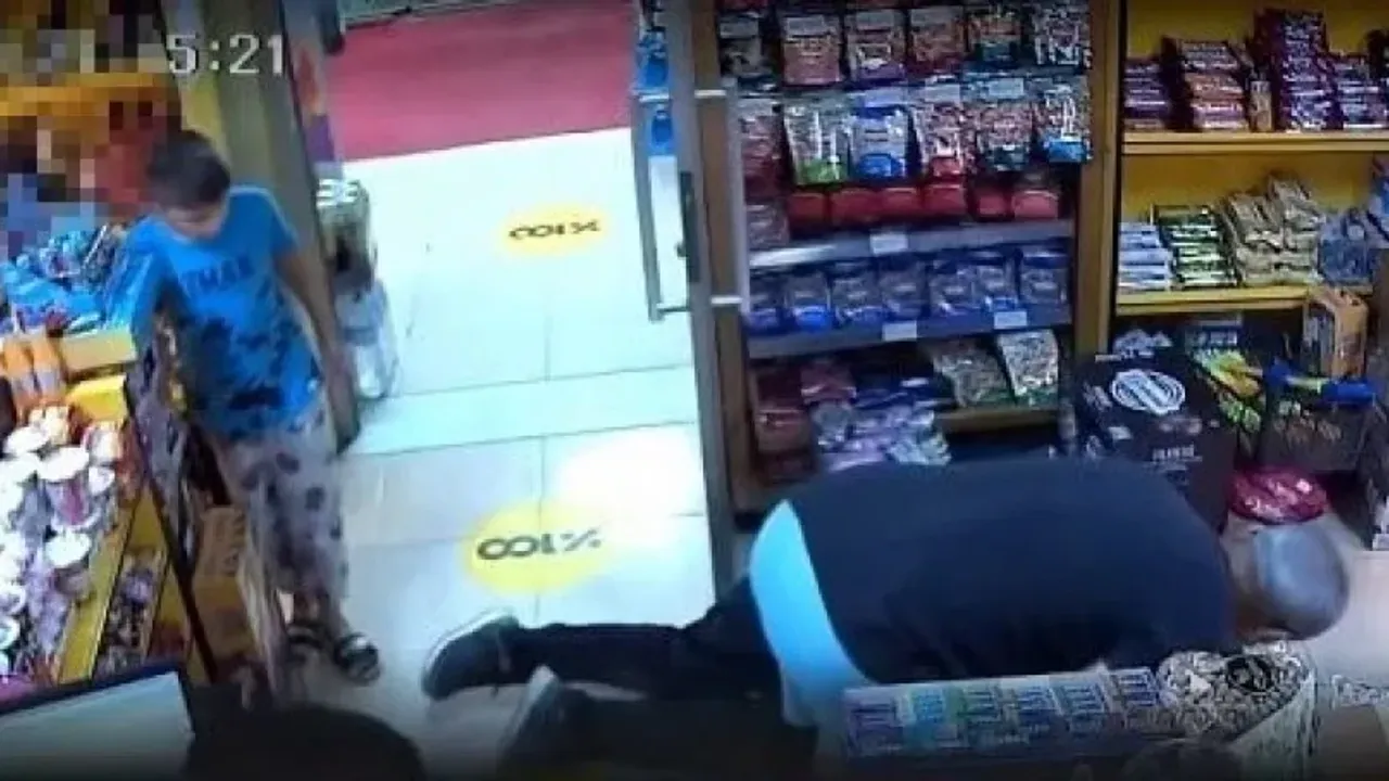 Görüntülerde, markette gülerek konuşan Kaya'nın bir anda yere yığılması yer alıyor.