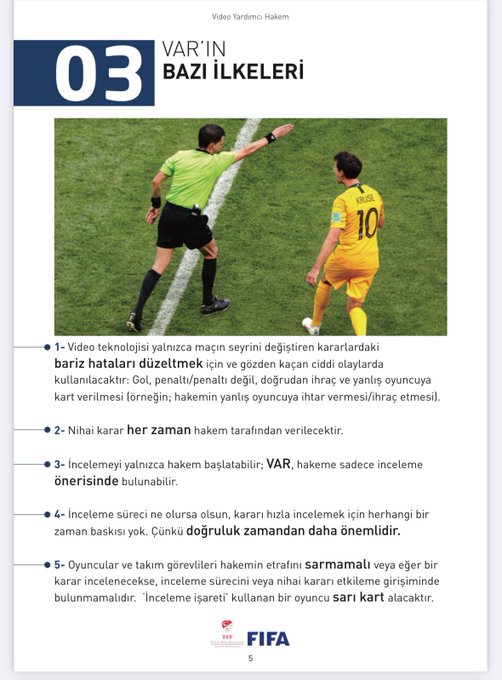Kurala göre, "VAR sadece hakeme izleme önerisinde bulunabilir, nihai kararı hakem verecek" deniyor.