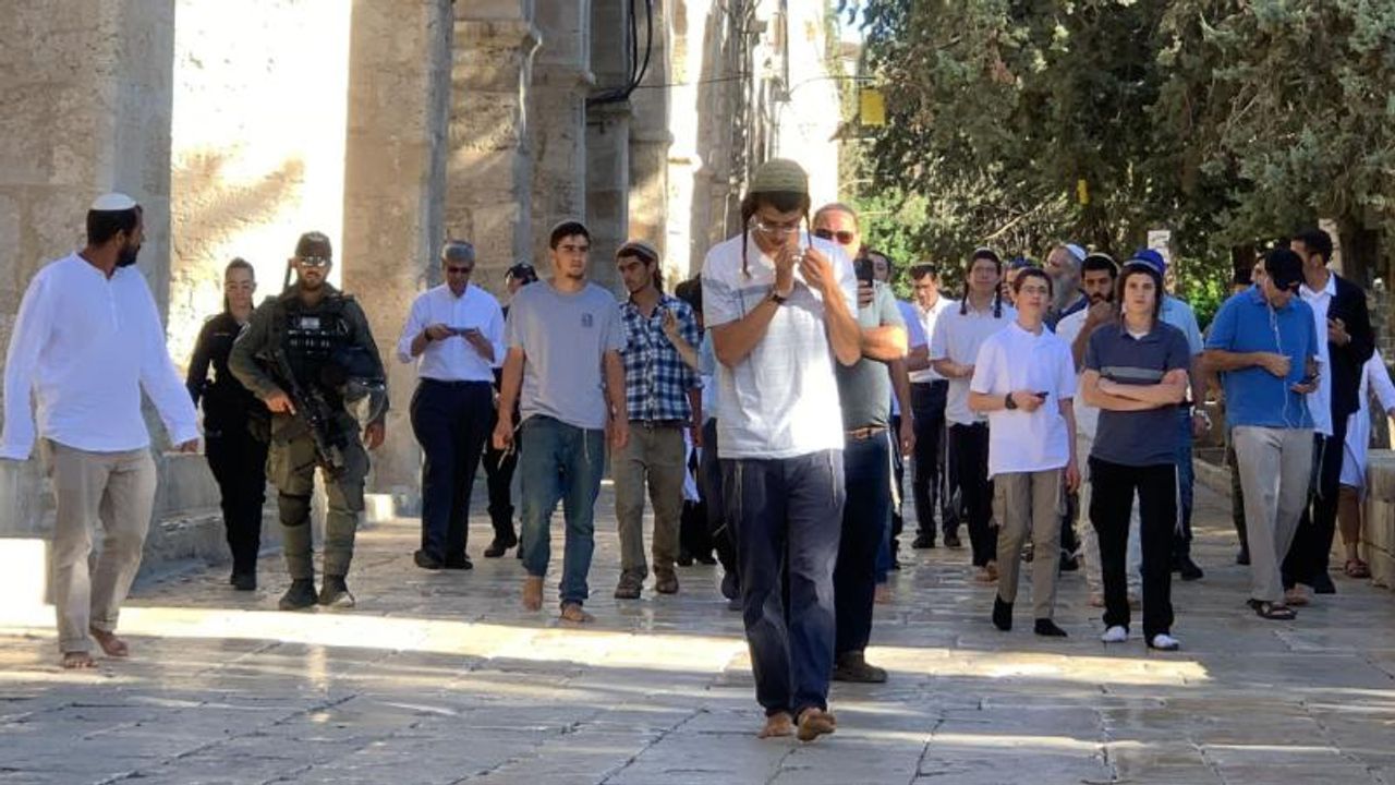 Gruplar halinde Aksa'nın avlusunda provakatif şekilde tur atan fanatik İsrailliler, Kubbetu's Sahra'nın önünde "Talmudik" ayinler gerçekleştirdi.