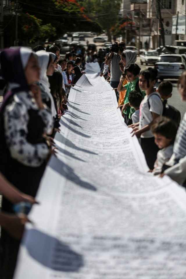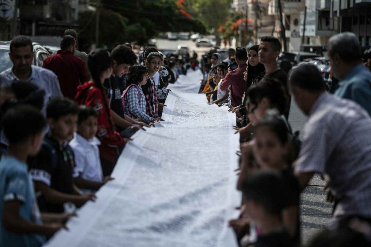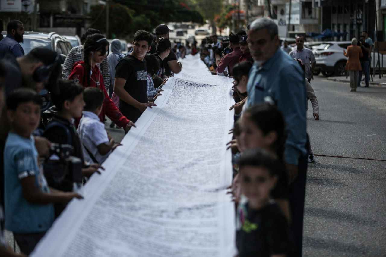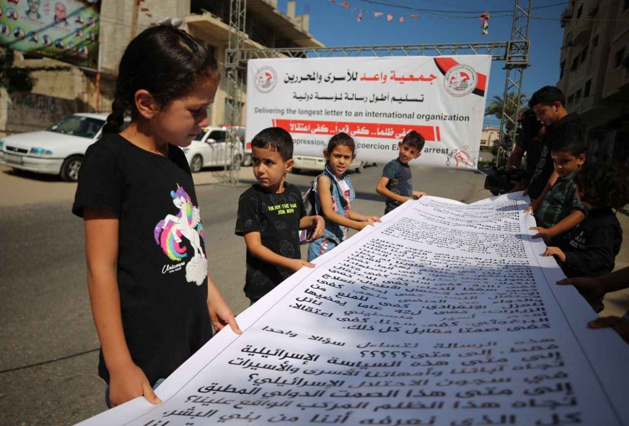 Gösterinin ardından, İsrail'in hapishanelerdeki ihlallerinin tafsilatıyla zikredildiği 100 metre uzunluğundaki mektup Komite yetkililerine sunuldu.
