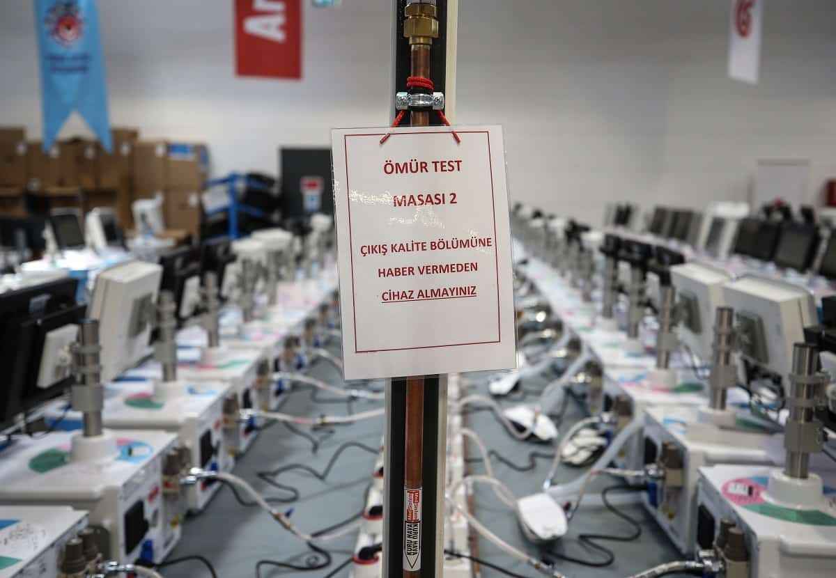 İkinci alanda çoklu sayıda test yaptıklarını ifade eden Öztürk, "Yerli solunum cihazının üretiminde üçüncü alanda 48 saat farklı modlarda performans testi yapılıyor. Ardından da paketlenip hastanelere gidiyor." diye konuştu.