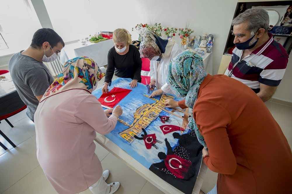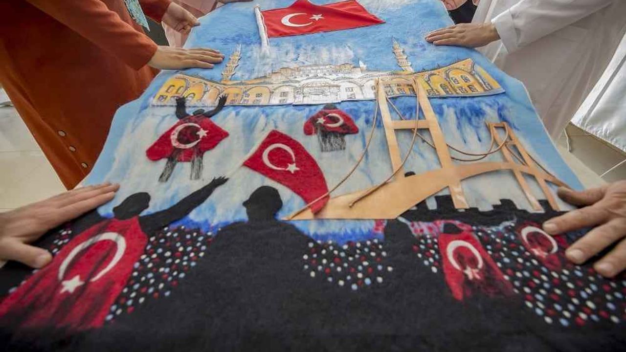 15 Temmuz'u anlatan el emeği, göz nuru tablolardan biri Ankara, diğeri Diyarbakır'da sergilenecek. Enstitü Müdürü Ayşe Adıgüzel, Hayat Boyu Öğrenme Genel Müdürlüğü bünyesinde faaliyetlerini yürüttüklerini ve 15 Temmuz için kendilerinden özel bir çalışma istendiğini söyledi. Çalışmaya katılabilecek tüm atölyelerin katkı sunmak istediğini ve bir fikir fırtınası yaptıklarını belirten Adıgüzel, "Bütün atölyelerimiz, tabloyu milli birlik ve beraberlik duygusuyla çalıştılar." dedi.