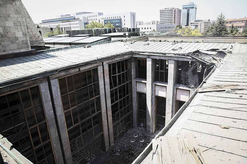Darbeci pilotlarlar Gölbaşı'ndaki TÜRKSAT tesislerine 4, TBMM'ye 2 bomba daha attı. TBMM'ye atılan bombalar 32 kişiyi yaraladı. Darbe girişiminin ardından yapılan tespite göre, Meclis'te yaklaşık 20 milyon liralık hasar meydana geldi.