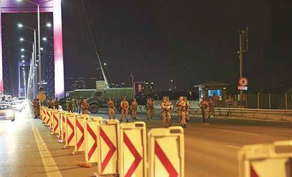 Bir grup asker Boğaziçi ve Fatih Sultan Mehmet köprülerini saat 22.00 sıralarında tek taraflı trafiğe kapattı. Anlam verilemeyen askeri hareketlilik, televizyon kanallarında haber oldu. Sosyal medyada Ankara ve İstanbul başta olmak bazı şehirlerde patlama ve silah sesleri duyulduğu haberleri yer aldı.