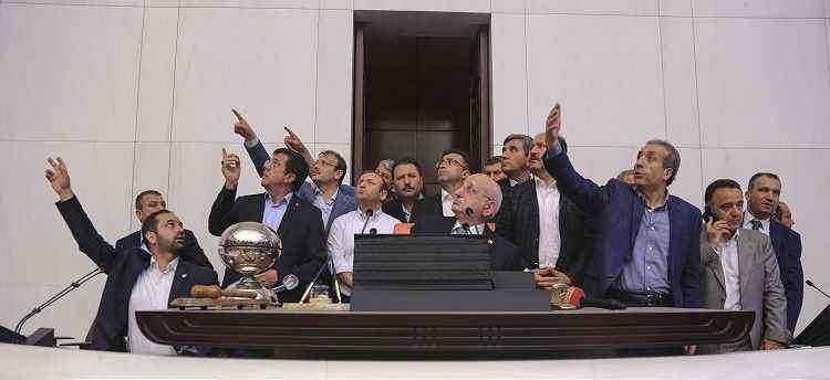 TBMM'de temsil edilen tüm siyasi partilerden milletvekilleri, demokrasi ve Meclise sahip çıkmak üzere TBMM Genel Kurul salonunda saat 01.39'da toplandı.