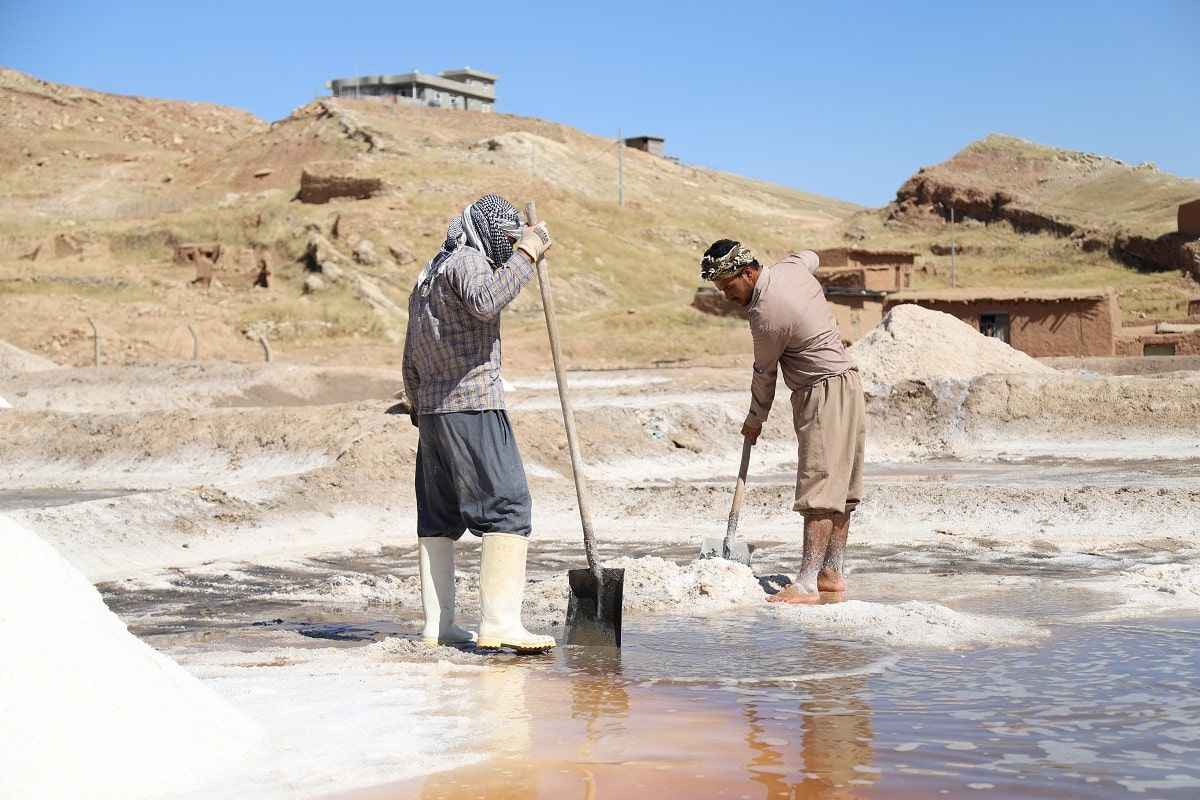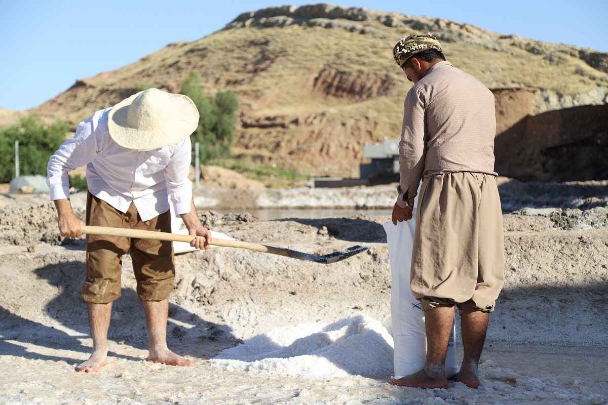 Irak'ın Süleymaniye kentindeki bir köyde yaklaşık 200 yıldır geleneksel yöntemlerle doğal kaynak suyundan mineral değeri yüksek yıllık 400 ton tuz üretiliyor.