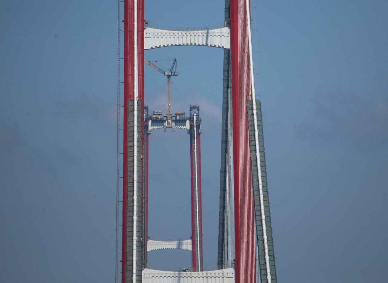 Köprü projesinin su üstü çalışmalarının hızlanmasını sağlayan yolun işlevi sona erdi. Yaklaşım viyadüklerinden 4 bin 330 metre uzunluğundaki kedi yolunun sökümünün, ağustos ayı içinde tamamlanması planlanıyor.