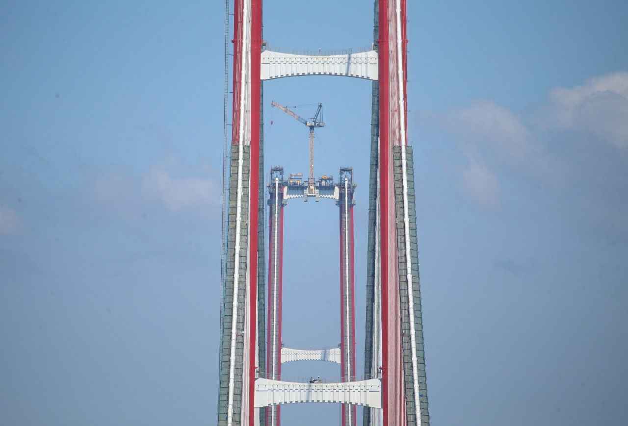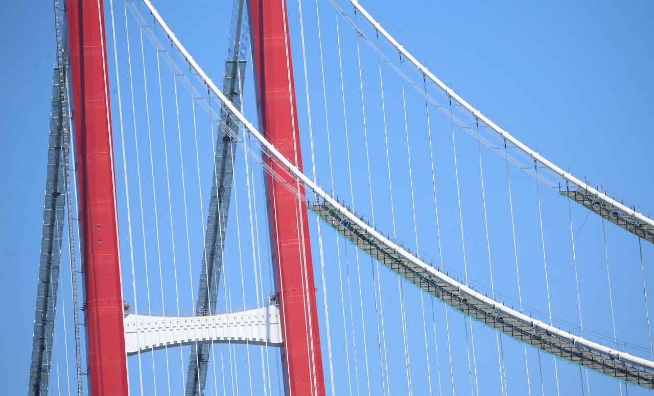 Boğazda Asya ile Avrupa kıtalarını ilk kez birbirine bağlayan ve köprünün silüetini oluşturan kedi yolu, Kasım 2020'den itibaren iki ayda tamamlandı.
