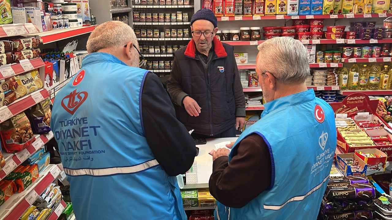 Vakıf görevlileri, 5 mahalledeki 15 bakkala veresiye borcu olan 20 aileyi tespit etti. Bakkalları dolaşan görevliler, 82 bin lirayla ailelerin borçlarını kapattı.
