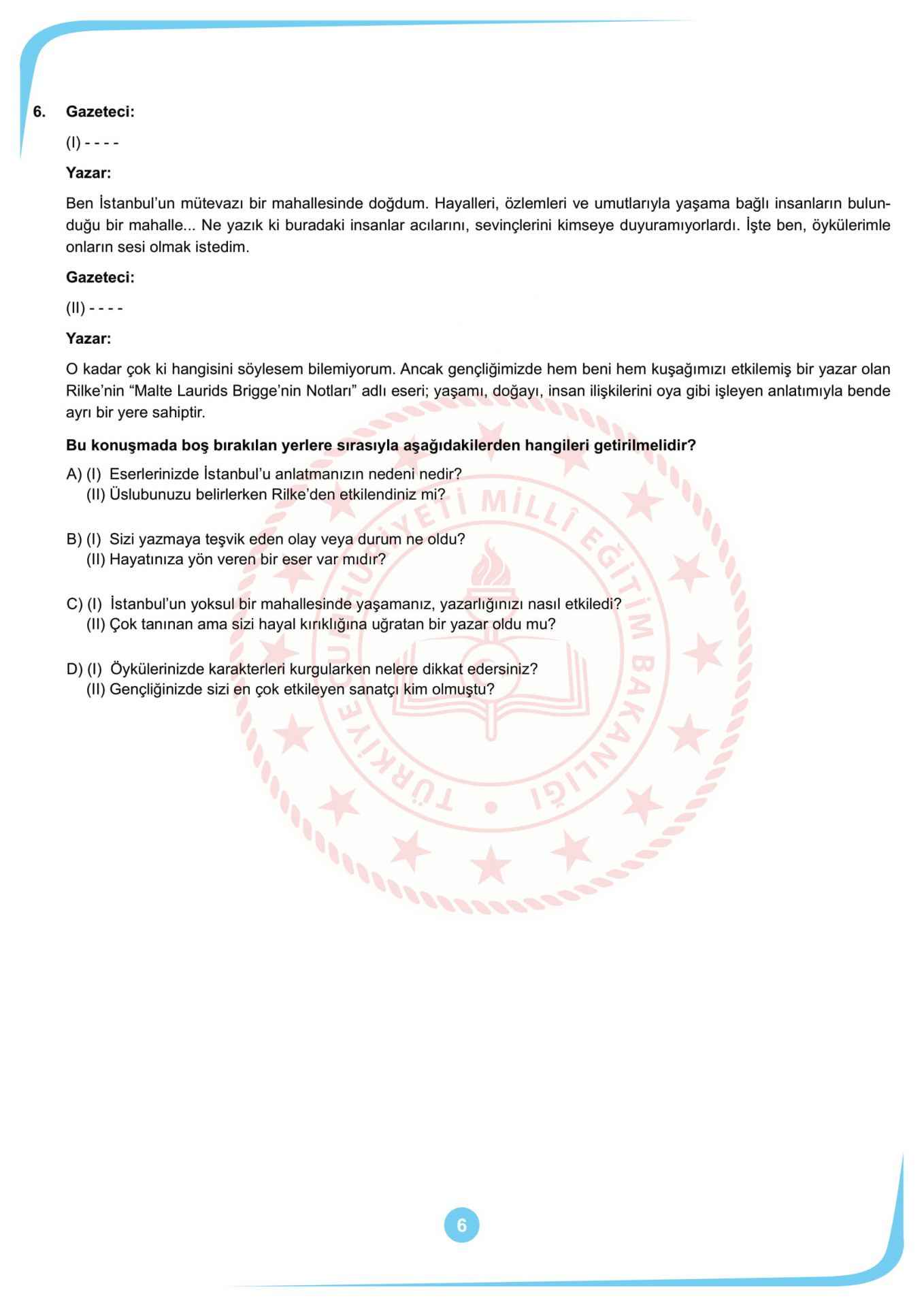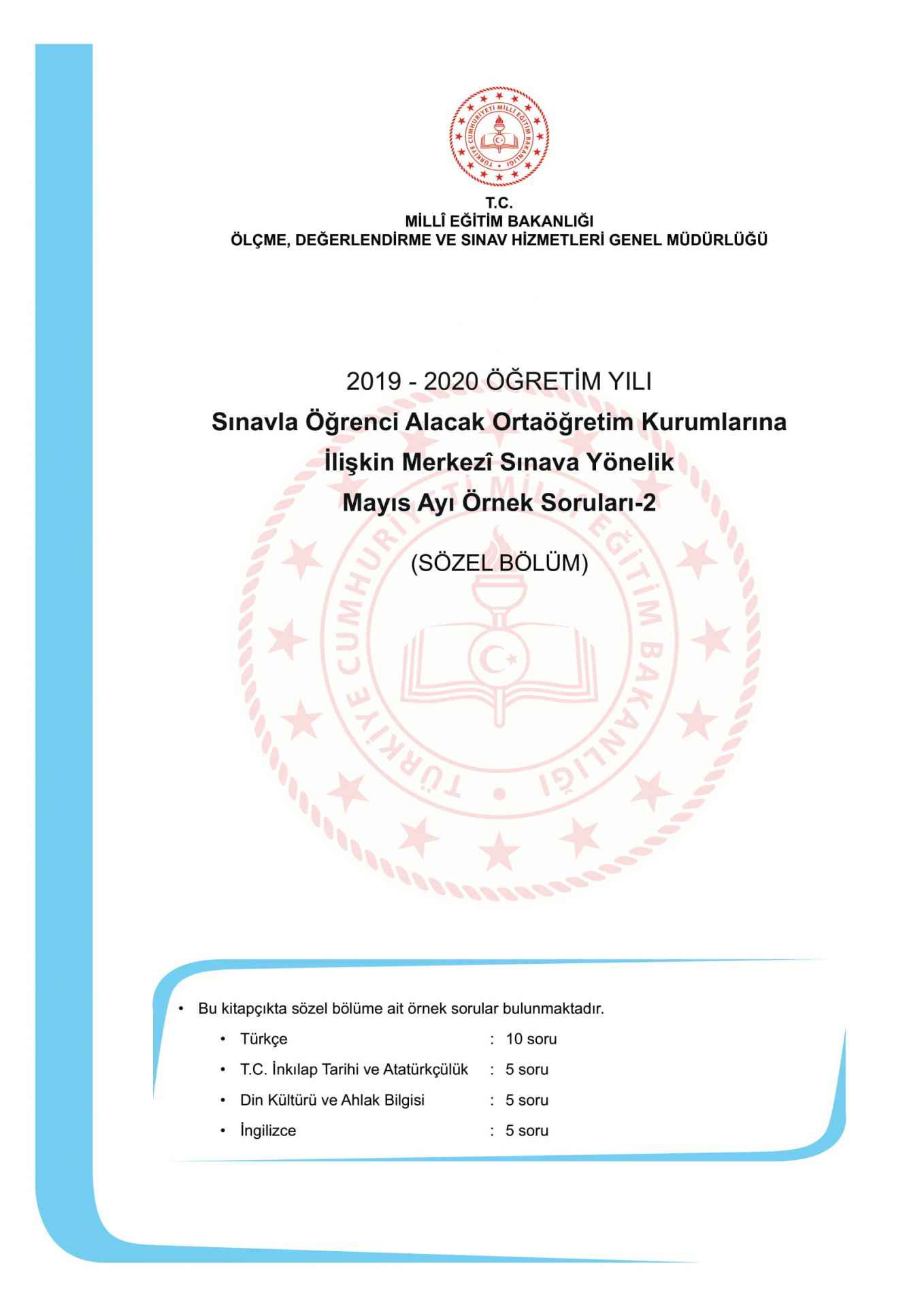 İşte 20 Mayıs'ta yayımlanan 2020 LGS Mayıs ayı 2. örnek soruları (sözel) kitapçığı...
