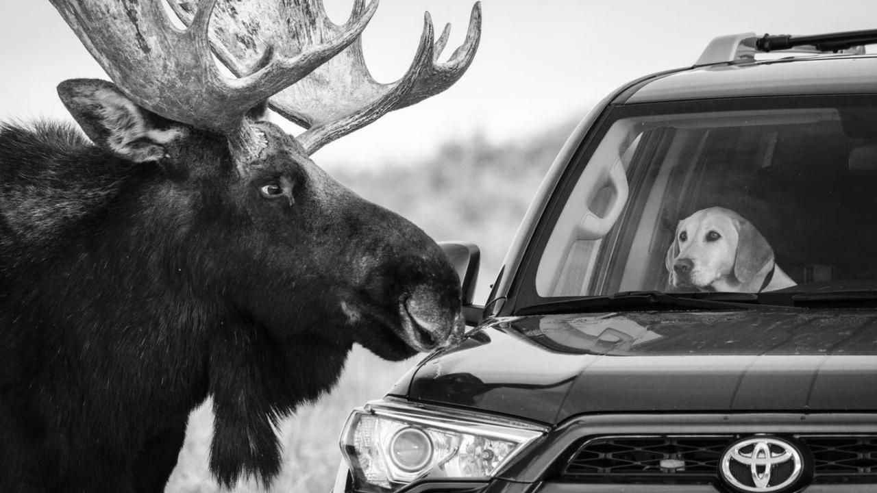 ABD`deki bir milli parkta geyikle köpeğin karşılaşması.