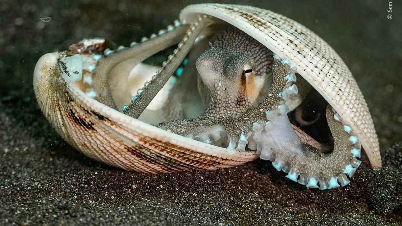 Hindistan cevizi ahtapotu. Kuzey Sulawesi.