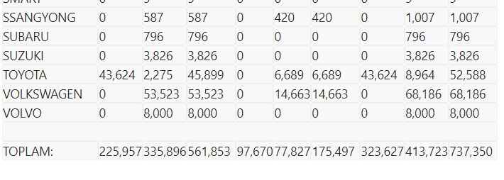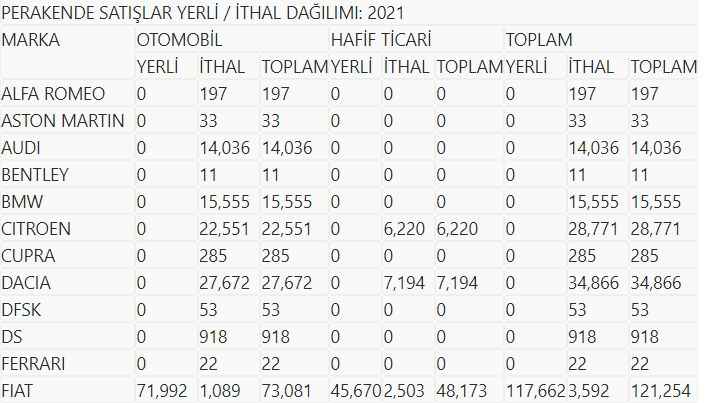 2021 yılında en fazla satış yapan otomobil markaları ve satış adetleri şöyle: