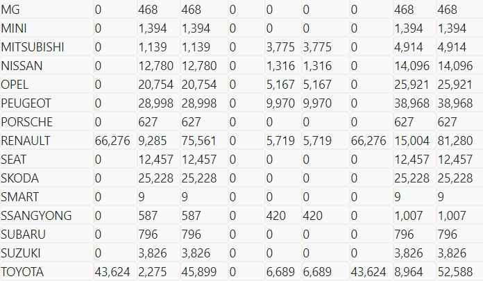 Peugeot 9 bin 970 satışla dördüncü ve Dacia da 7 bin 194 satışla beşinci oldu.