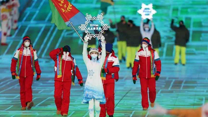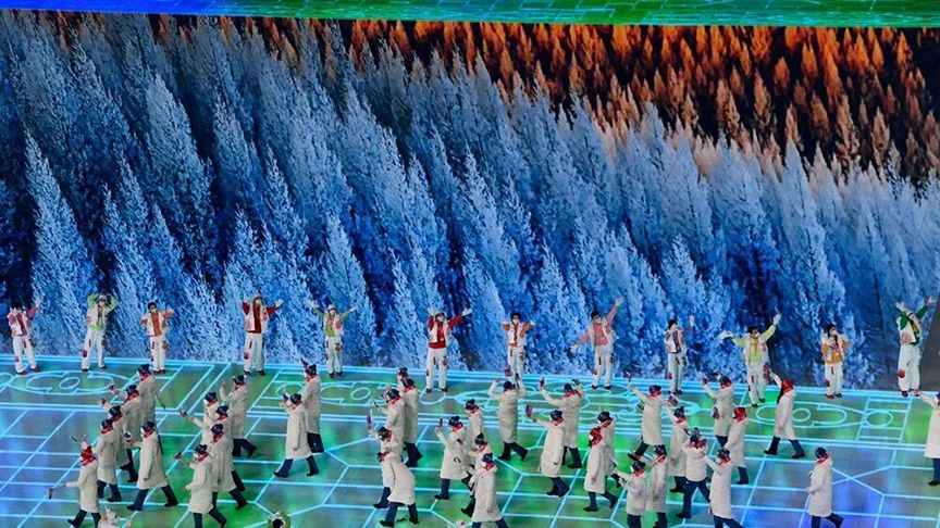 91 ülkeden sporcuların katıldığı Pekin Kış Olimpiyatları'nın açılış seremonisinde, kar taneleri maketleri taşındı.
